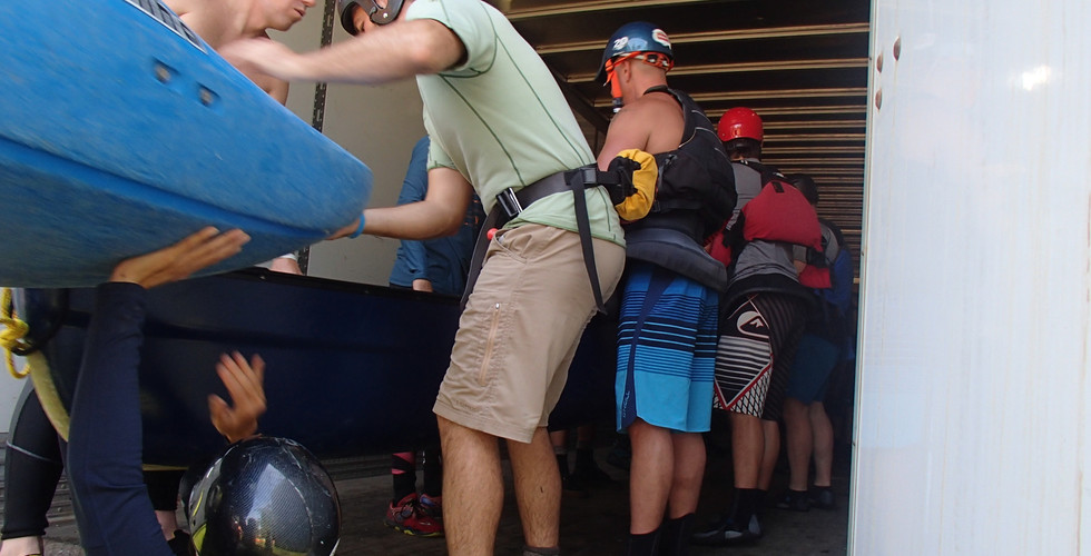 Toute une organisation pour transporter les pagayeurs et les embarcation au point de mise à l'eau et les ramener au camping